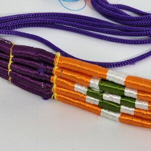 This exquisite belt showcases a vibrant interplay of colors and traditional craftsmanship. Each section is meticulously woven, reflecting a rich cultural heritage. The tassels add an elegant touch, making it a timeless piece of art. A conversation starter for those who appreciate intricate designs and cultural depth.