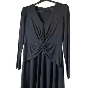 Lauren Ralph Lauren Women's 14 Black Twist Knot Dress Long Sleeve New