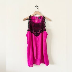 City Chic Sleeveless Chiffon and Lace Top in Bright Pink and Black - Size 16