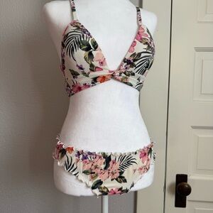 Pink and Purple Bikini Set with Tropical Floral Design