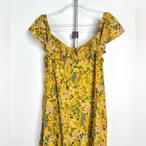 Old Navy Cami Fit Flare Yellow Gold Floral Shirred Lined Midi Sun Nap Dress 1X