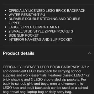 New With Tags! LEGO Brick Backpack, very open to offers!