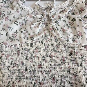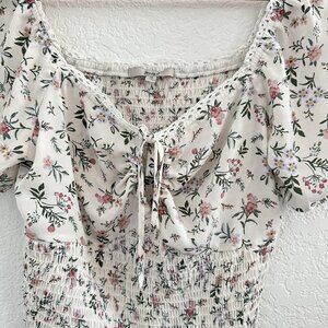 Papaya Blouse Womens M White Ditsy Floral Smocked Puff Sleeve Milkmaid Babydoll