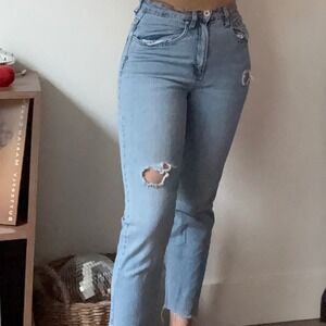 Keywords: Cotton On Jeans, Straight Leg Jeans, Distressed Denim, Ripped Jeans, Crop Jeans, Raw Hem Jeans, Light Wash Denim, Casual Jeans, Everyday Denim, Womens Jeans, Cotton On Straight Stretch, Size 8 Jeans, Denim Pants, Streetwear Jeans, Comfortable Jeans