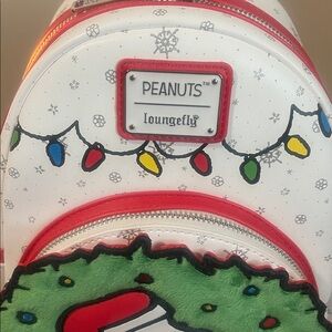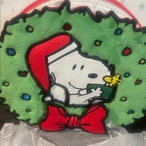 Brand new with tags never been used. Loungefly peanuts Snoopy bag. This bag is so amazing with the fuzzy green wreath . designed with Christmas vibe.