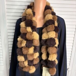LA FIORENTINA Genuine Brown Rabbit Pom Pom Scarf