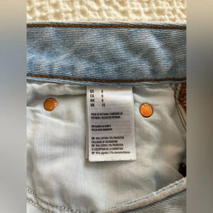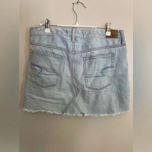 American Eagle Light Denim Distressed Mini Skirt