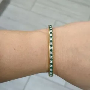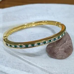 Swarovski crystal green and clear/diamond look pave hinged gold bracelet