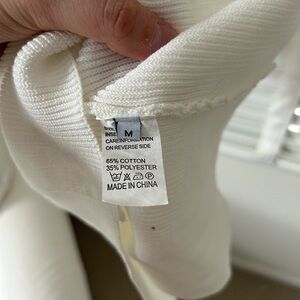 Knit Midi Dress Strapless White Knotted Bandeau Ribbed Medium