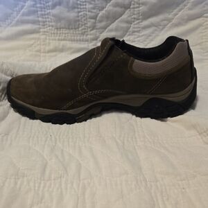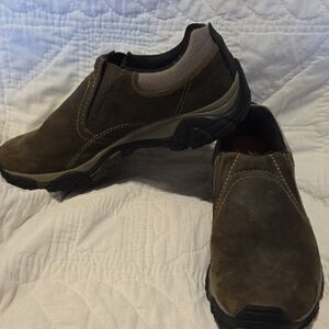 Merrill brown leather slide on shoes with Vibram sole. Excellent condition.