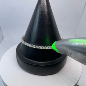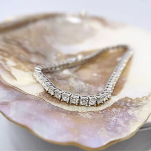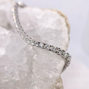 Moissanite Tennis Bracelet. Brilliant & Sparkly 3mm stones. A beautiful piece of fine jewelry. Looks like a real diamond tennis bracelet. Believable size.