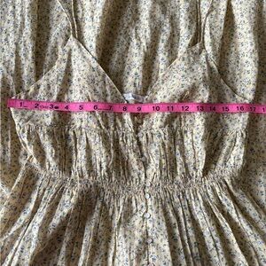 DÔEN's 'Irina' midi dress is printed with colorful florals against a sunny yellow backdrop. It's made from organic cotton that's shirred to create gathered tiers and has pin-thin straps and a low V-neckline. Wear it with flats or sneakers. This product was created using Considered Materials.