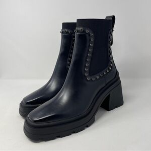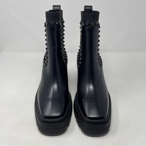 Jimmy Choo Veronique 80mm Leather Embellished Block Heel Ankle Boots - NWT EU 39 /US 9 - fits small / order half size up. Product Features: Elastic gores for a flexible fit Square toe Pullon Leather upper with crystal embellishment Pull tab with logo hardware at back of topline Logo at heel Lug sole 3.14" (80mm) block heel Leather/plastic/metal/fabric/salpa upper, leather lining, rubber sole Made in Italy 11/24-b18