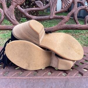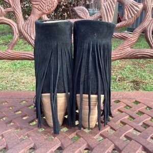 💋Koolaburra Boho Black Suede Leather Block Heel Open Toe Fringed Sandal