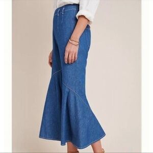 Anthropologie Pilcro Ruffled Hem High Rise Ultra Wide Leg Flare Crop Jeans Size 0