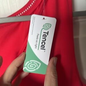 This vibrant red tank top from Lands' End features a sleeveless design with a flattering peplum detail. The V-neckline and fitted waist create a structured look, while the peplum ruffle adds a touch of femininity.