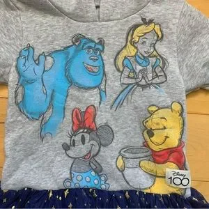 Disney Girls Hooded Cosplay Dress with Tulle Skirt Size Small (6-6X). Features Disney characters, such as sully from monsters Inc., Alice from Alice in Wonderland, Minnie Mouse, and Winnie the Pooh. Has hood with ears. Blue tulle skirt with stars decorating. Fruit perfect for any Disney lover or someone going to Disney World or Disneyland. Embrace the magic. Smoke-free home.