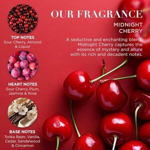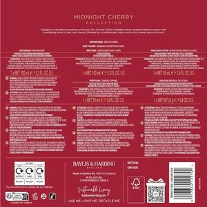 All beautifully fragranced with our new Midnight Cherry scent. Indulge in a decadent symphony of senses
