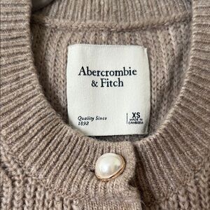Abercrombie Taupe Ribbed Cardigan with Pearl & Gold Buttons