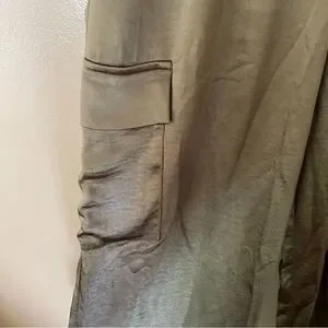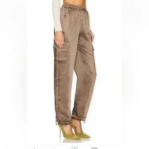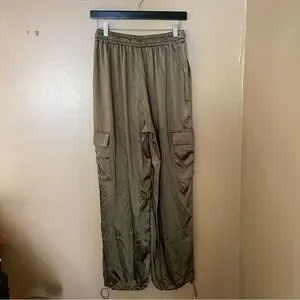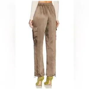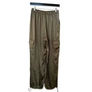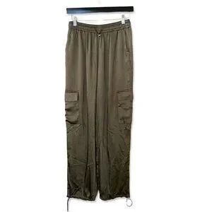 Superdown Rita Cargo Pants Olive green satin track jogger pull on Revolve NWT