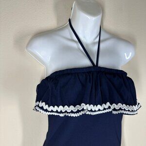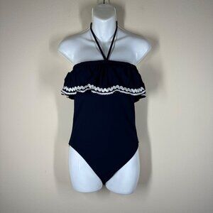 J.Crew Rickrack Ruffle Bandeau One Piece Swimsuit Womens Size 4 Navy Tie Neck