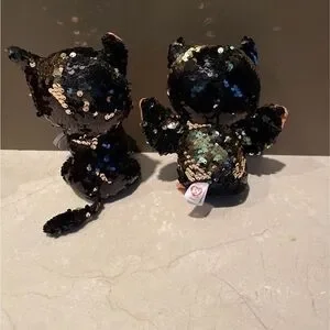 Like new TY Beanie Limited Edition flippable collection. Jinx and Omen 6” tall. Sequins flip between black and gold. Halloween