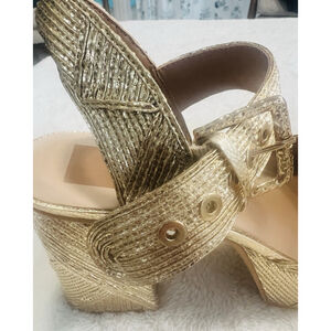 Dolce Vita Size 10 Gold Woven Stella Bobby Deco Platform Heels Sandals New