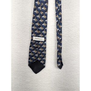 Keywords: Van Heusen, necktie, tie, men's tie, blue tie, gold tie, fan pattern, business casual, formal wear, professional, accessory, men's fashion, classic, elegant