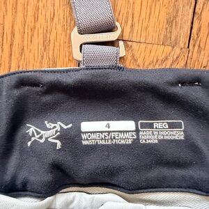 Stylish Arc'teryx snow pants for women. Features adjustable waistband. Perfect for winter activities.