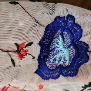 no stains, a couple of flowers have loose threads - unraveling but not to the point of tears
