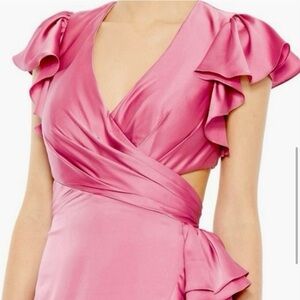 Mac Duggal Dress Pink Cutout Ruffle Hem Formal Dress Asymmetrical Size 4 NWT