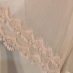Tan Asymmetrical Ruffled Blouse with Sheer Embellishments