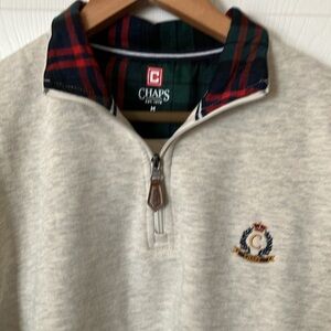 Brand new condition, men’s 1/4 zip shirt with chaps logo and plaid collar. Cotton/ polyester. Worn 1x