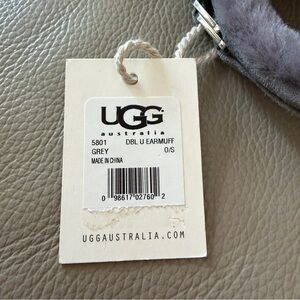 New with tags in box style 5801 cozy warm UGG Australia earmuffs Women’s One Size. Perfect for chilly days. Gorgeous soft grey real dyed shearling sheepskin, genuine suede leather trim, 100% polyester fill, with authentic Ugg registered metal stamp. Past style, box included, new condition.