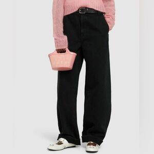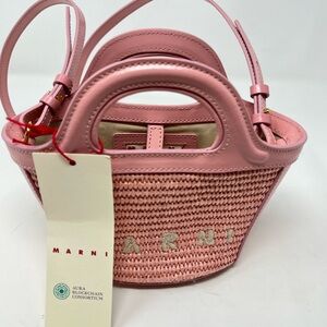 Marni Micro Tropicalia Pink Raffia and Leather Bucket Bag with Crossbody Strap