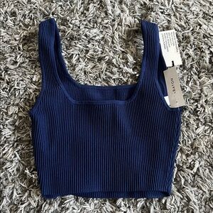 Elevate your wardrobe with this stylish blue ribbed top from Babaton. Perfect for any occasion, this top offers both comfort and elegance.