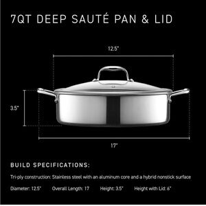 HexClad Hybrid Deep Sauté Pan/Chicken Fryer with Lid, 7-Qt