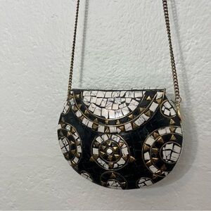 From St Xavier-Silver Metal Bag Handmade Embossed Shoulder Clutch