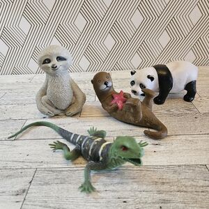 Lot Of 4 Plastic Animal Figures Sloth Lizard Otter Panda
