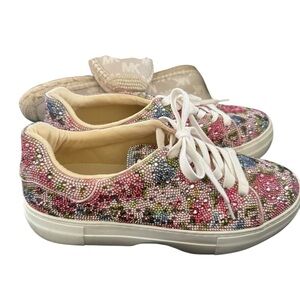 Betsey Johnson Sidny Rhinestone Floral Sneakers Size 8.5 EUC