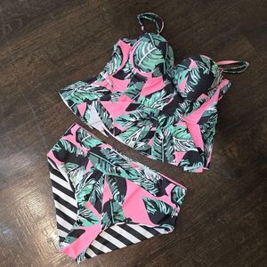 Tropical Print Bikini Top High Waist Bottom
