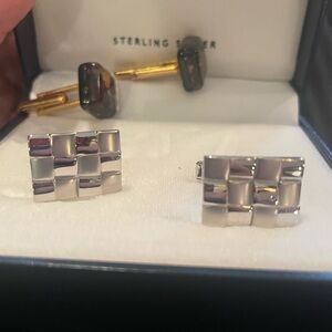 Silver and Brown Cufflinks Set