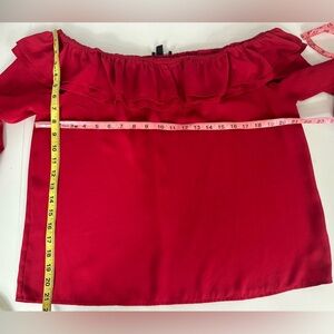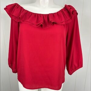 J Crew Mercantile Sz L Women Red Off The Shoulder 3/4 Sleeve Lightweight Blouse