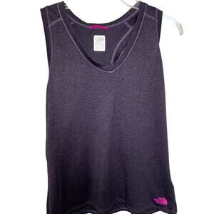 The North Face v neck racerback top purple size large beautiful purple color with pink logo great condition. vapor wick technology.