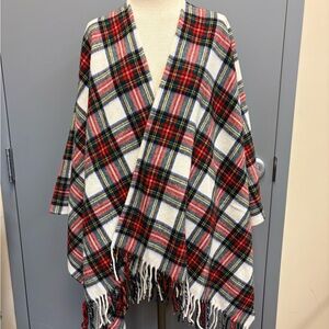 Peter Macarthur & Co Scottish Wool Plaid Wrap Shawl Red Green Blue Fringe