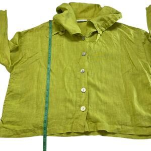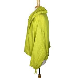 BRYN WALKER Chartreuse Green Adjustable 100% Linen Short Sleeve Jacket. Size Small Womens. Made in USA. Adjustable ties at each side and at the collar edge for a truly custom fit. Lightweight linen is perfect for layering during seasonal transitions. Excellent condition -- no rips, stains, or holes