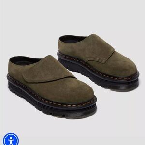 Slip sole-first into new sensations with our new Zebzag AnyWair mule. Made with soft-yet-durable Bronx suede and an adjustable Riptape strap to lock in comfort from day one. The ergonomic Zebzag sole combines lightweight EVA and rugged PVC to give your feet an easy ride without limiting your destination. And our SoftWair footbed adds extra cushioning. The sole boasts distinctive DM's signatures, with a bold tread pattern, exaggerated grooving, and our unmistakable yellow welt stitching.