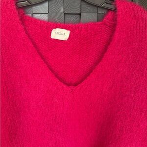 MIKUTA Oversized Mohair Fuchsia V-Neck Sweater