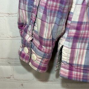 LL Bean Fleece Lined Plaid Shacket Flannel Womens Medium Pink Lumberjack