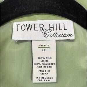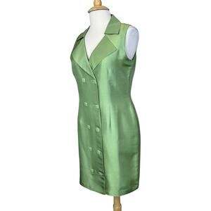 Tower Hill Collection Green 100% Silk Double-Breasted Sleeveless Blazer Dress 12